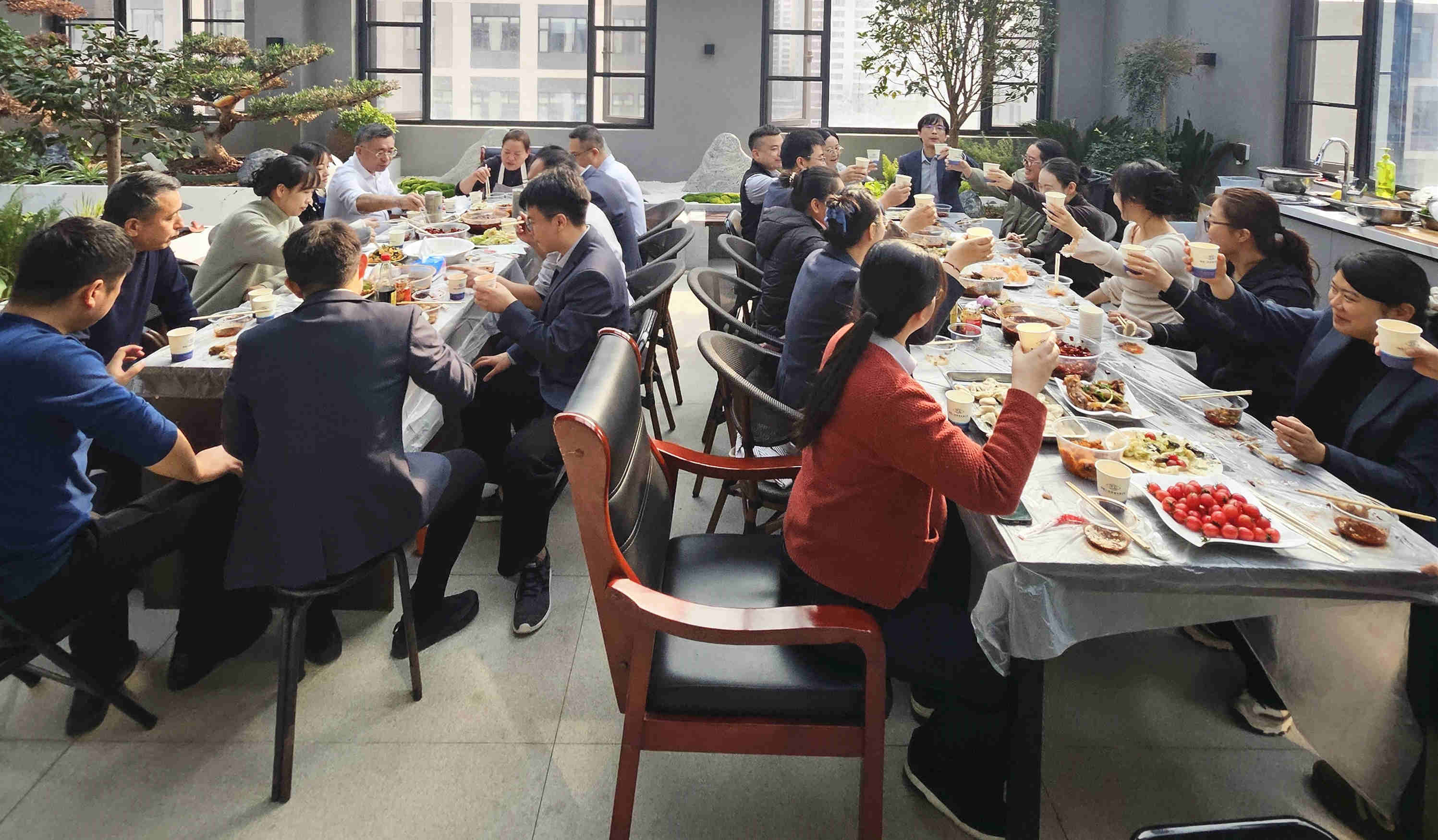 清水飄芙蓉,元寶落玉盤。熱氣騰騰的餃子陸續(xù)出鍋,誘人的香氣彌漫開來。員工們圍坐在一起,品嘗著親手制作的美味成果,醋香、辣油各取所愛,咬一口餃子,暖意從舌尖直達(dá)心底,瞬間驅(qū)散了冬日的寒意。大家一邊享用美食,一邊分享工作趣事,這一刻,忙碌的工作壓力煙消云散,取而代之的是節(jié)日的喜悅和滿滿的歸屬感。
